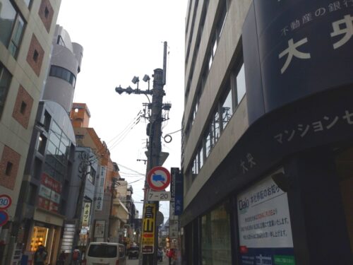 西通りから左に数十メートル歩いた所に不動産の建物があるので、そこを右折しましょう。