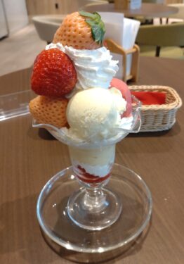 以前一度ご紹介しましたが、今回は、今が旬のいちごを追ってみましたよ♪紅白両方楽しめるパフェに注目してみてくださいね!